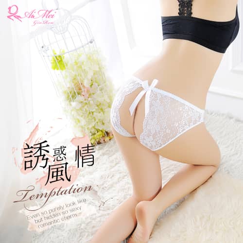 誘惑風情!花朵蕾絲蝴蝶結後開檔三角褲﹝白﹞